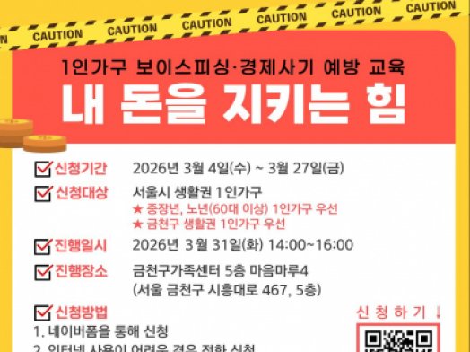 - 금천구[금천구] 1인가구 보이스피싱·경제사기 예방교육 <내 돈을 지키는 힘>