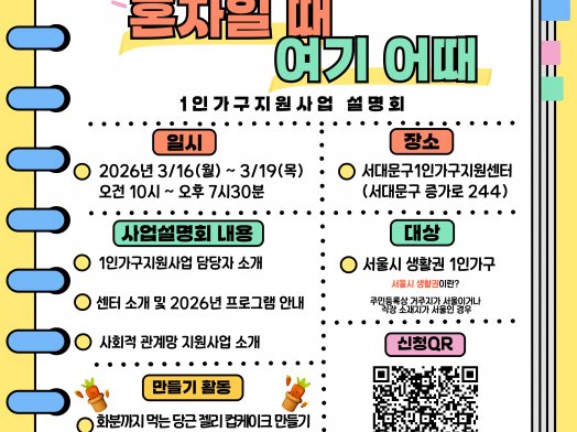 - 서대문구[서대문구] 2026년 서대문구 1인가구지원사업 설명회 '혼자일 때, 여기 어때'