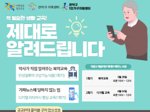 - 관악구[관악구] 중노년 1인가구 생활교육_「제대로 알려드립니다」 모집중!