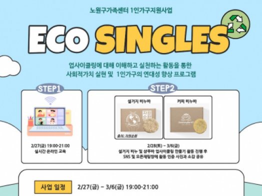- 노원구[노원구] 1인가구 환경캠페인 '에코싱글즈 1기' 모집
