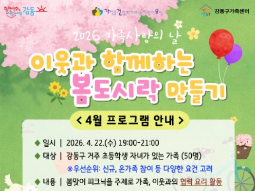 - 강동구[강동구] 가족사랑의 날 4월 프로그램 참여가족 모집