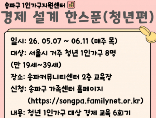 [송파구] 2026년 1인가구 경제 설계 한스푼(청년편) 행사일시 | 2026-05-07 19:00 ~ 2026-06-11 21:00
