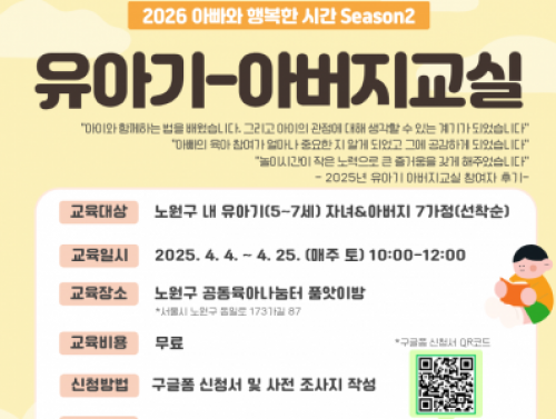 [노원구] 2026 아자프로젝트 유아기-아버지교실 참여자모집 행사일시 | 2026-04-04 10:00 ~ 2026-04-25 12:00