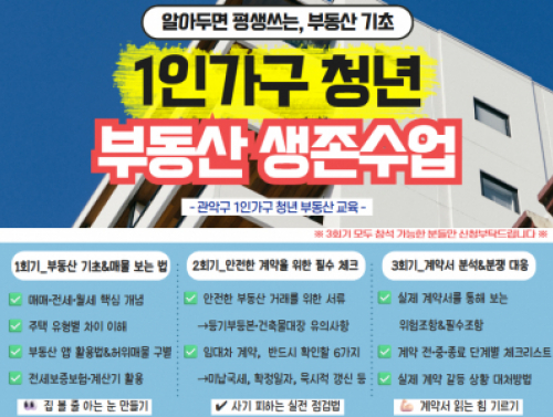 [관악구] 1인가구 경제 교육_「1인가구 청년 부동산 생존수업」참가 모집 행사일시 | 2026-04-07 19:00 ~ 2026-04-21 19:00