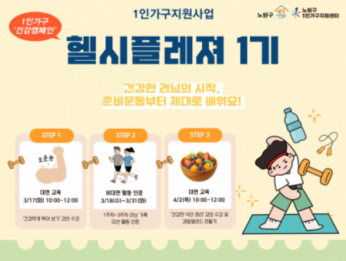 [노원구] 1인가구 건강캠페인 '헬시플레져' 참여자 모집중 행사일시 | 2026-03-17 10:00 ~ 12:00
