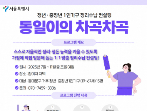 [동대문구] 정리수납컨설팅 <동일이의 차곡차곡> 행사일시 | 2025-04-01 09:00 ~ 2025-11-30 18:00