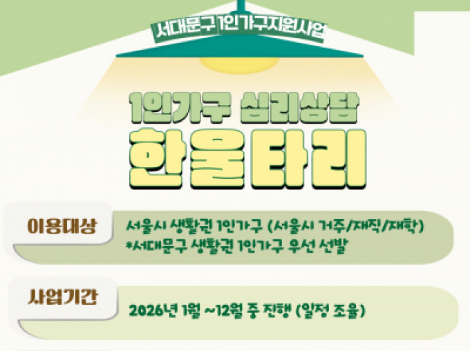 - 서대문구[1인가구지원사업] 1인가구심리상담 '한울타리'