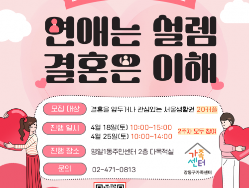 [강동구] 2026 예비부부교실 참여자 모집 행사일시 | 2026-04-18 10:00 ~ 2026-04-25 15:00