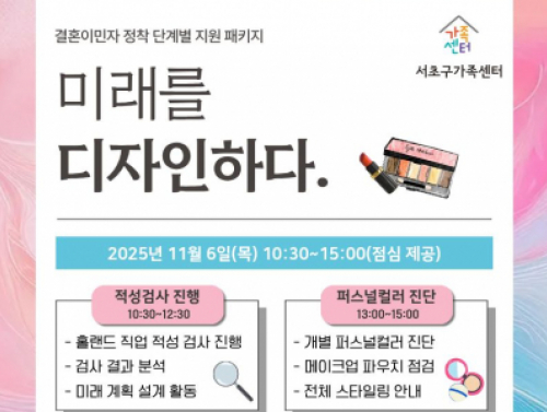 [서초구] 적성검사&퍼스널컬러 진다 '미래를 디자인하다' 참여자 모집 행사일시 | 2025-11-06 10:30 ~ 15:00