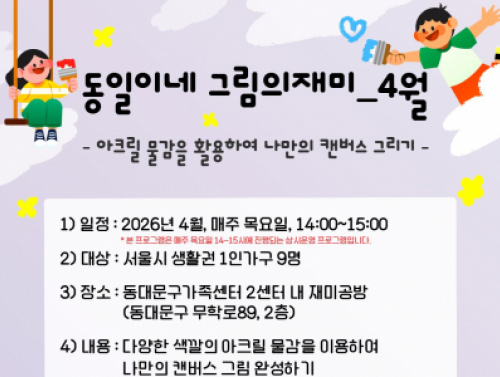 [동대문구] 동일이네 그림의재미_4월 참여자 모집 행사일시 | 2026-04-02 14:00 ~ 2026-04-30 15:00