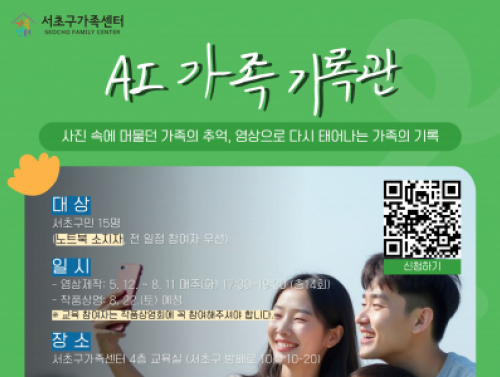 [서초구] AI 가족 기록관 참여자 모집 행사일시 | 2026-05-12 17:30 ~ 2026-08-11 19:30