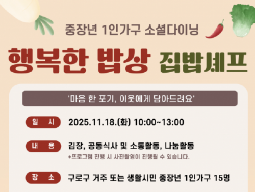 [구로구] 2025 행복한 밥상 '집밥셰프' 김장 특별프로그램 참가자 모집 행사일시 | 2025-11-18 10:00 ~ 13:00
