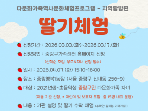 [중랑구] [역사문화] 지역탐방편 - 다문화가족 딸기체험 행사일시 | 2026-04-07 15:10 ~ 16:00