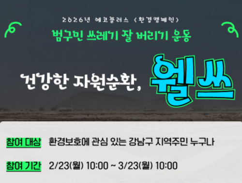 [강남구가족센터]쓰레기 굿-굿바이 [건강한 자원순환, 웰쓰] 환경캠페인 행사일시 | 2026-02-23 10:00 ~ 2026-03-23 10:00