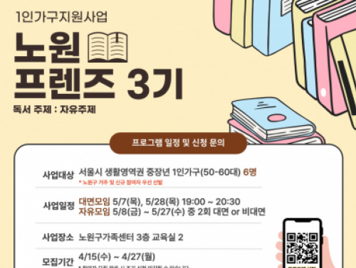 [노원구] 중장년 1인가구 독서 커뮤니티 프로그램 참여자 모집중 행사일시 | 2026-05-07 19:00 ~ 2026-05-28 20:30
