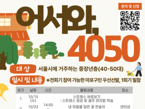 접수기간 | 2025-09-26 00:00 ~ 2025-10-29 23:59서울시에 거주하는 중장년층(4-50대)