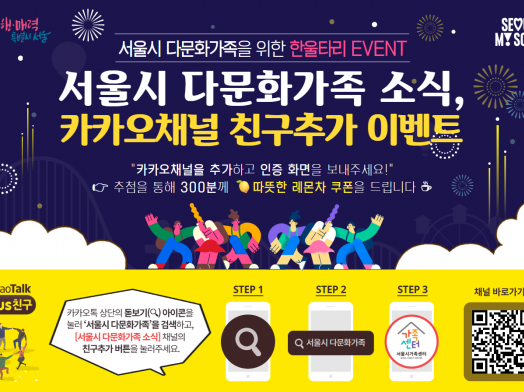 - [EVENT] ‘서울시 다문화가족 소식’ 카카오채널 친구추가 이벤트 안내(~11.23)
