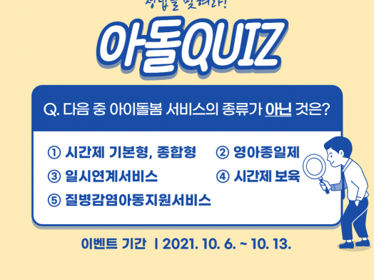 [아이돌봄 서비스] 정답을 맞혀라! 아돌QUIZ 댓글 이벤트(~10.13(수))