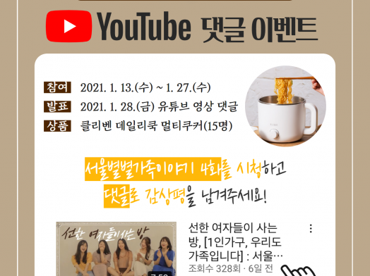 서울별별가족이야기 4화 유튜브 댓글 이벤트(~1. 27.)