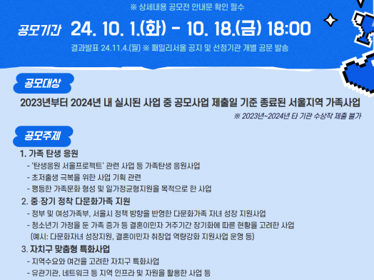[자치구 센터 공모] 2024 서울가족사업 공모전 안내(10. 1.~10. 18.)