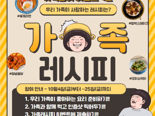 [가족참여 이벤트] 우리가족 레시피 공유 이벤트 진행 10/4 ~ 10/25