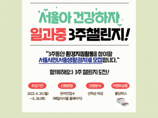 [서울아 건강하자: 4(For) eco] 환경캠페인 3주 챌린지 참가자 모집<마감>