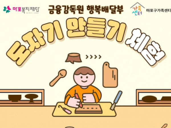 [마포구] 2025년 금융감독원 행복배달부 2025.10.21 마포구에서 센터에 등록된 다문화가족 아동 20명을 대상으로 도자기 만들기 체험이 진행됩니다. 많은 관심과 참여 부탁드립니다~ 프로그램명 : 2025년 금융감독원 행복배달부 대상 : 센터에 등록된 다문화가족 아동 20명 기간 : 2025. 11. 13. (목) 15:00~17:00 내용 : 다문화가족 아동 대상 문화체험 활동 장소 : 도자기카페 줄 신청방법 : 홍보지 내 링크접속 및 QR코드 (참여확정은 개별연락드립니다.)