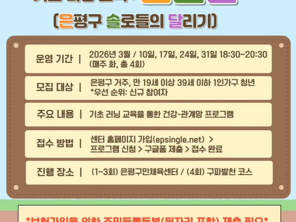 [은평구] 브라보은솔라이프: 기초 러닝 교육 '은솔달(은평구 솔로들의 달리기') 참여자 모집