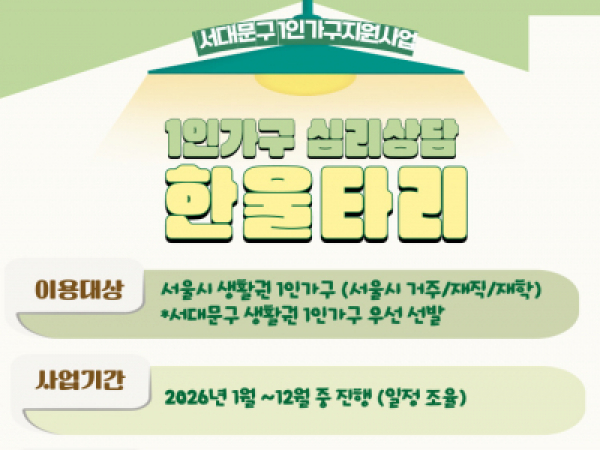 [1인가구지원사업] 1인가구심리상담 '한울타리'