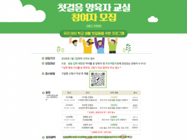 [도봉구] 2026 초·중등 입학 전환기 부모교육 프로그램 참여자 모집