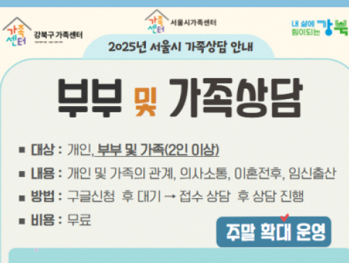 [강북구] 가족상담 안내 행사일시 | 2025-11-07 09:00 ~ 2025-12-31 18:00