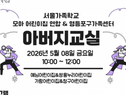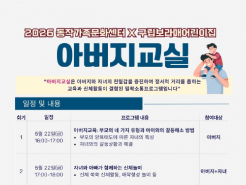 [2026 서울가족학교X동작] 아버지교실 (구립보라매어린이집) 행사일시 | 2026-05-22 16:00 ~ 18:00