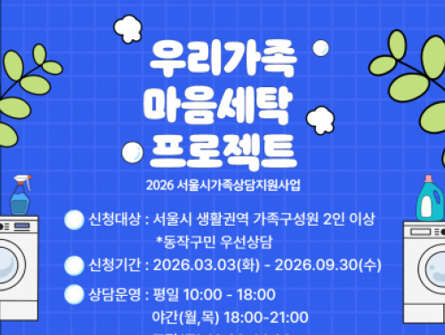 [동작구] 우리 가족 마음 세탁 프로젝트(서울시가족상담지원사업) 행사일시 | 2026-03-03 10:00 ~ 2026-09-30 18:00
