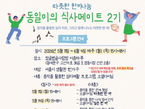 [동대문구] 따뜻한 한끼나눔 <동일이의 식사메이트 2기> 행사일시 | 2026-05-11 15:00 ~ 2026-06-04 18:00