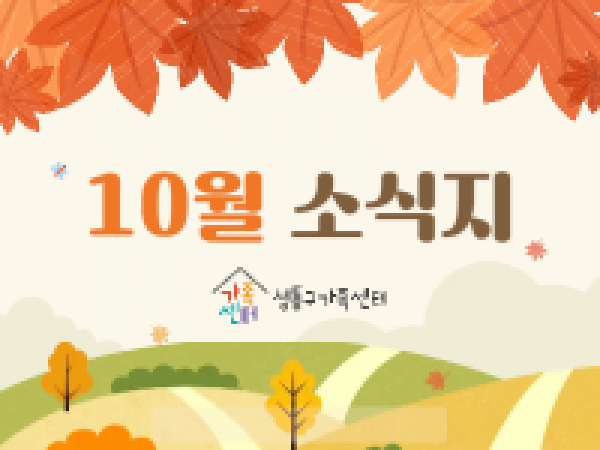 [성동구] 2025년 10월호 성동구가족센터 소식지 2025-10-02 10:53 | e-book (자치구센터) | 102 안녕하세요, 성동구 가족센터입니다. 🍂 가족의 품이 더욱 따뜻하게 느껴지는 가을, 풍요로운 한가위가 다가왔습니다. 서로의 마음을 나누며 웃음이 가득한 명절 보내시길 바랍니다.