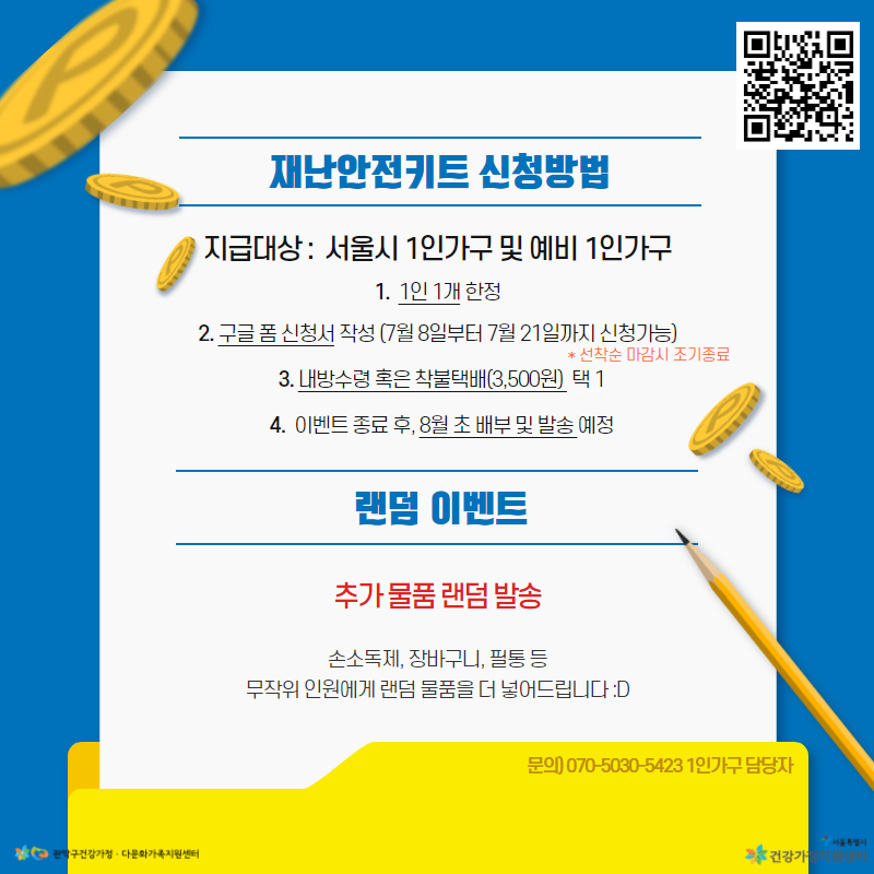 -서울시 1인가구 및 예비 1인가구를 대상으로 ‘재난안전키트’를 드립니다.
