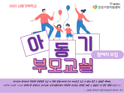 8월 28일~9월 11일 매주 토요일 아동기부모교실을 진행합니다!