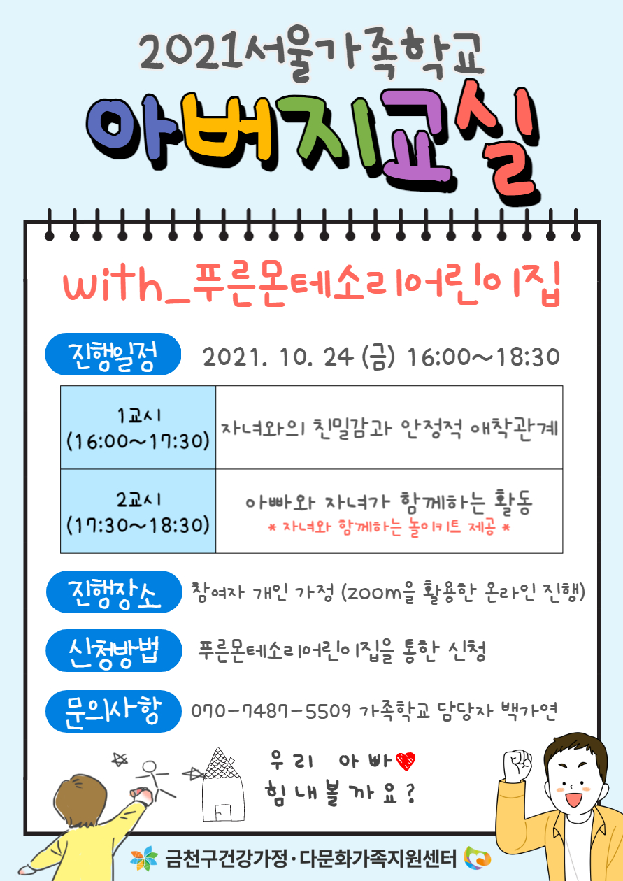 나도, 아이도, 엄마도 행복한 가정, 금천구 [찾아가는 아버지교실]과 함께하세요.