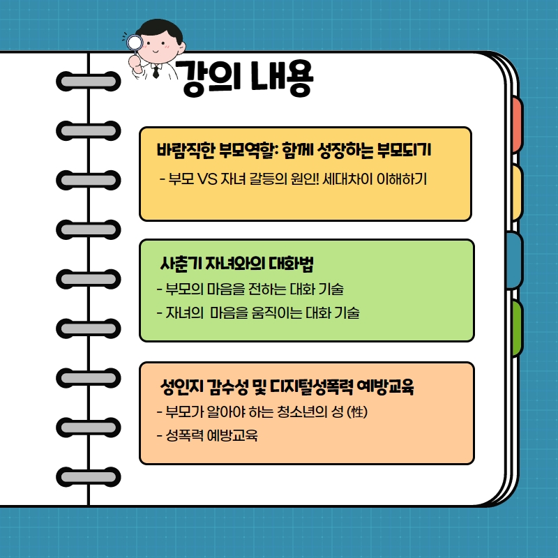 센터에서는 청소년기 자녀를 둔 학부모님들을 위해