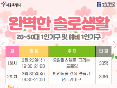 1인가구지원사업 "완벽한 솔로생활" 3월 프로그램은