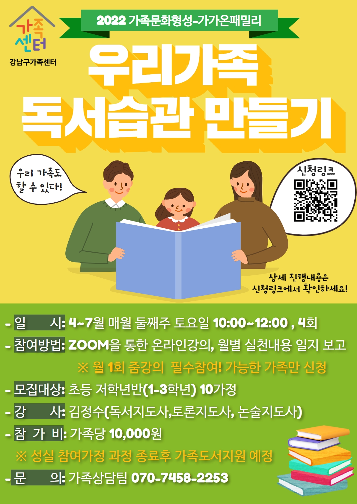 - 문의: 강남구가족센터 가족상담팀 070-7458-2253