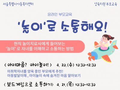 [서울시아동복지센터] 온라인 부모교육 '놀이로 소통해요!'