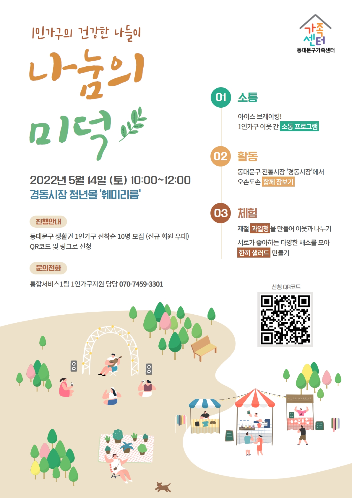 대상 : 동대문구 생활권 1인가구(동대문구민, 신규회원 우대)