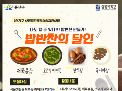 [용산구] 1인가구 자립준비청년(보호종료아동) 프로그램: 밥반찬의 달인 2회기