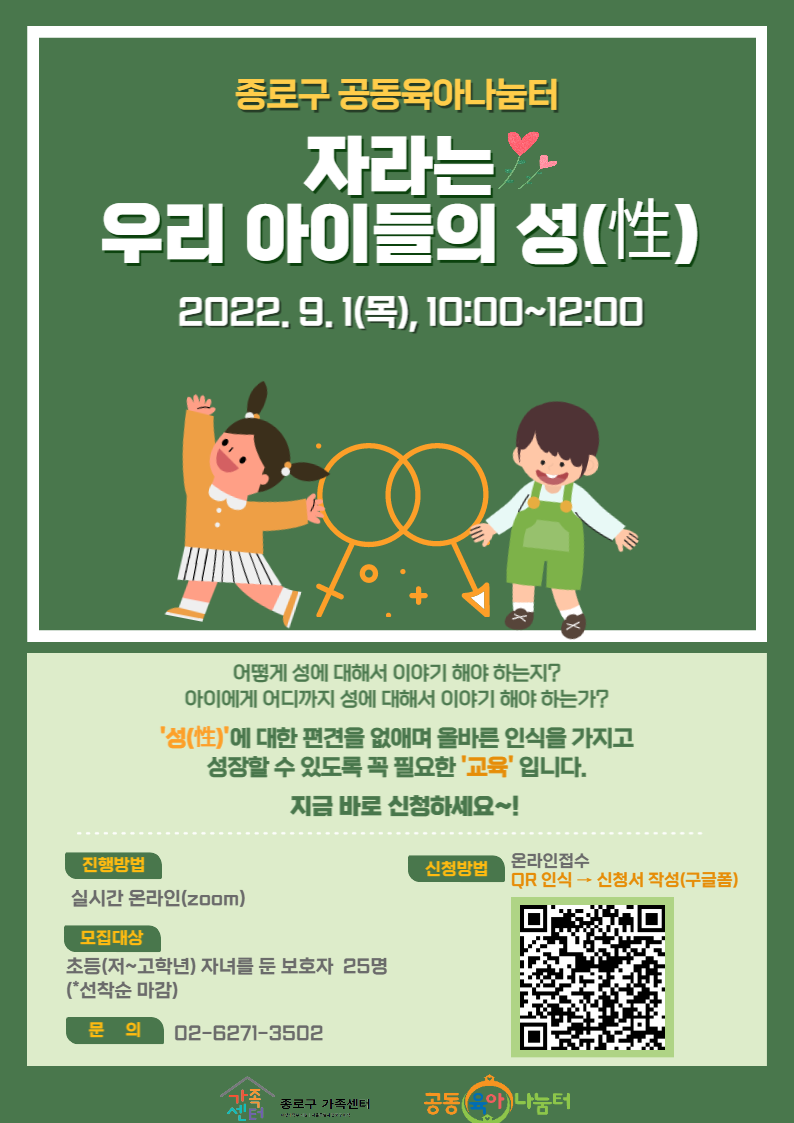 [종로구] '자라는 우리아이들의 성' 부모교육 참여가족 모집