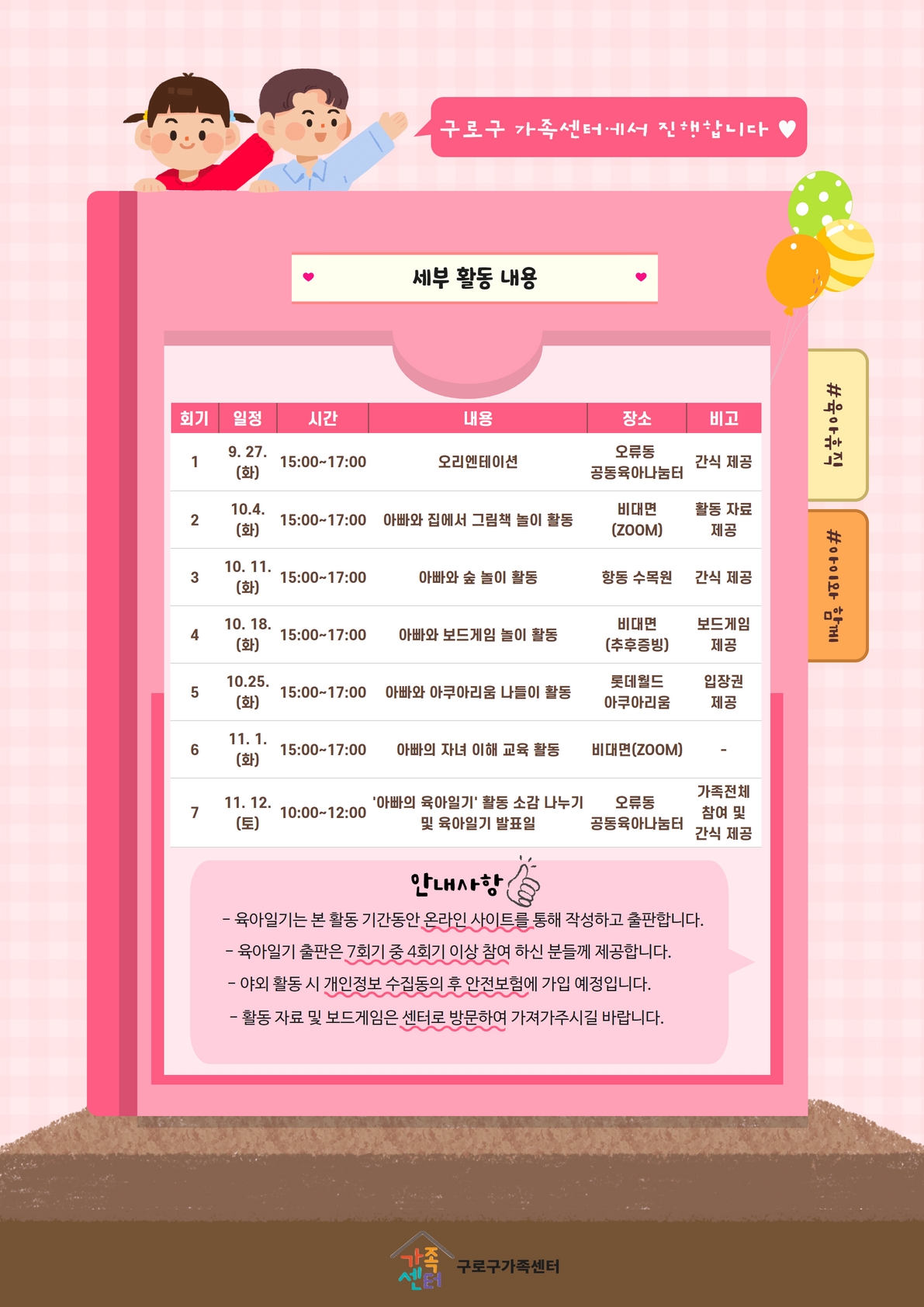 문의 : 구로구 가족센터 가족문화팀 이지원 070-4066-0535