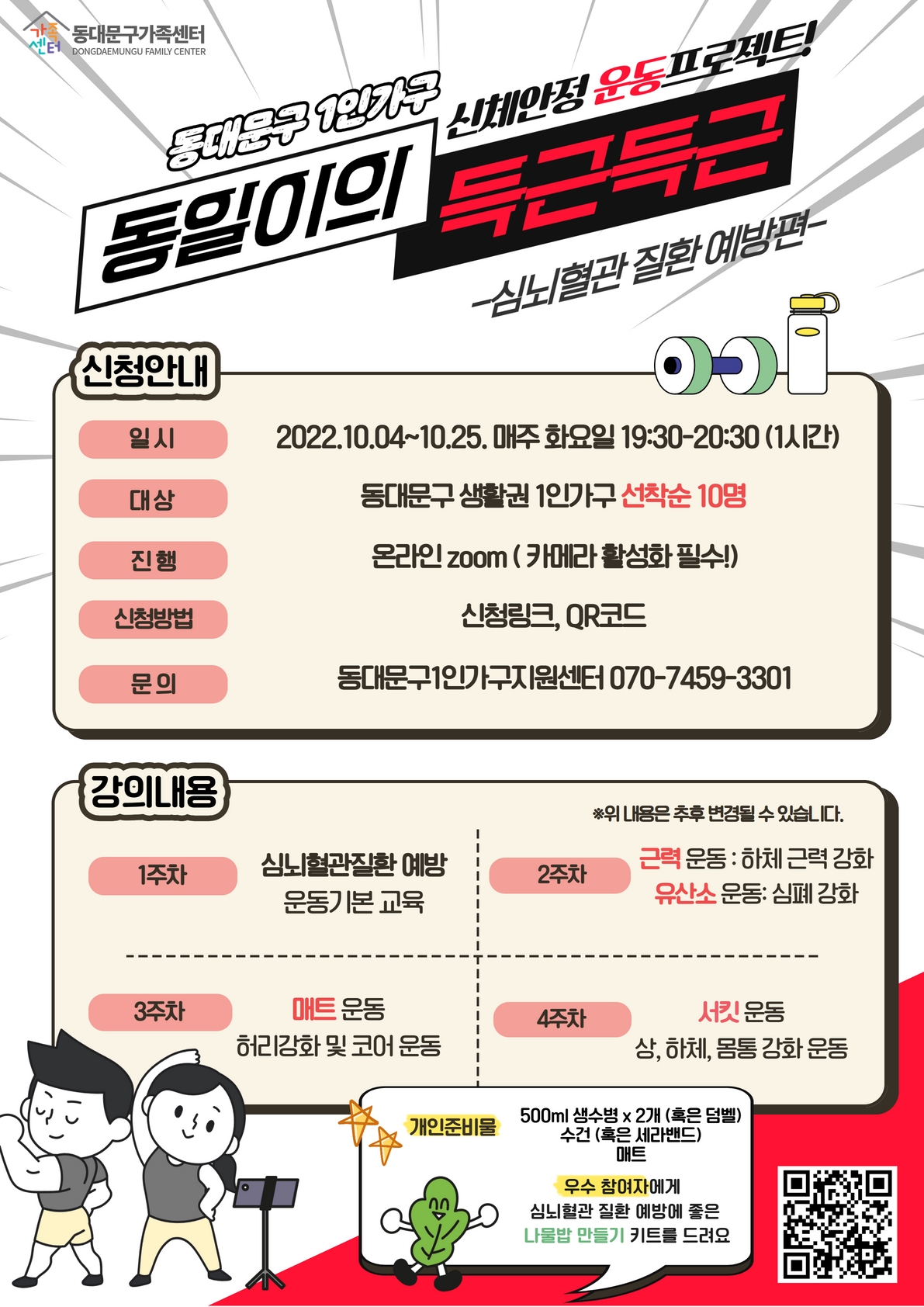 [동대문구] 1인가구 신체안정 운동 프로젝트 '동일이의 득근득근' 추가모집