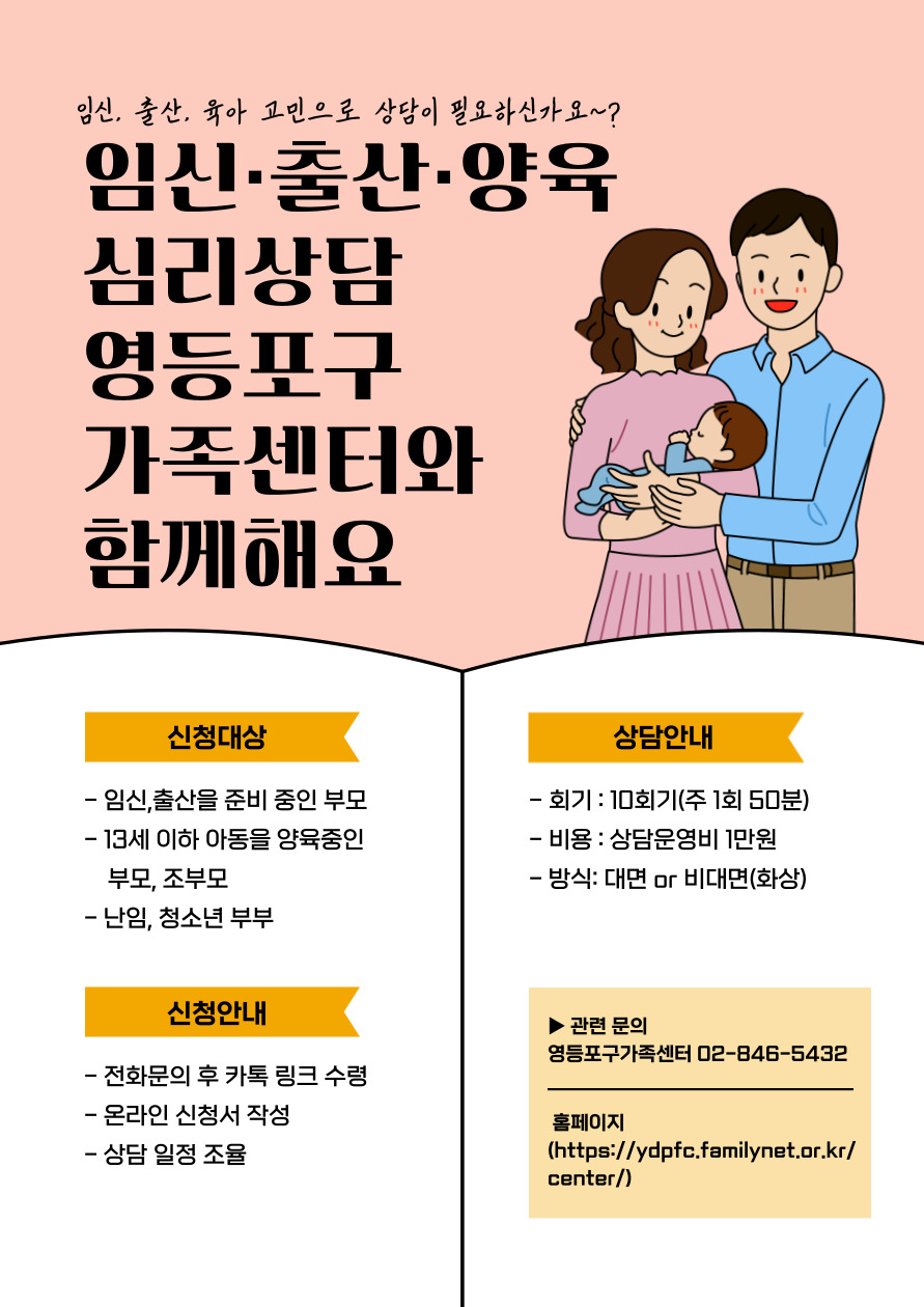 · 대상 : 13세 이하 아동 양육 중이거나 임신, 출산을 준비중인 영등포 구민