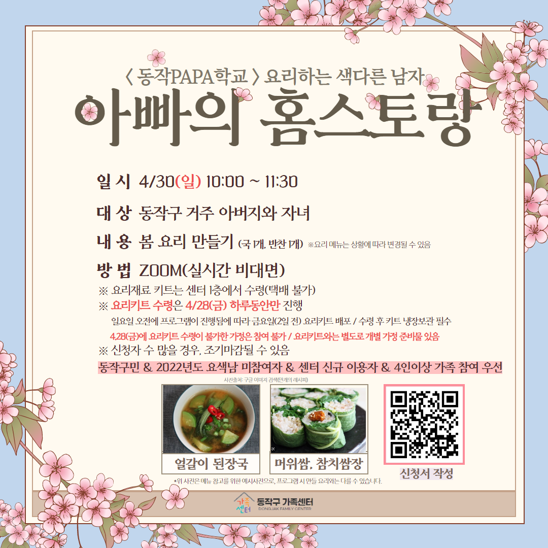 [동작구] 동작PAPA학교 요색남 봄요리편 신청접수중