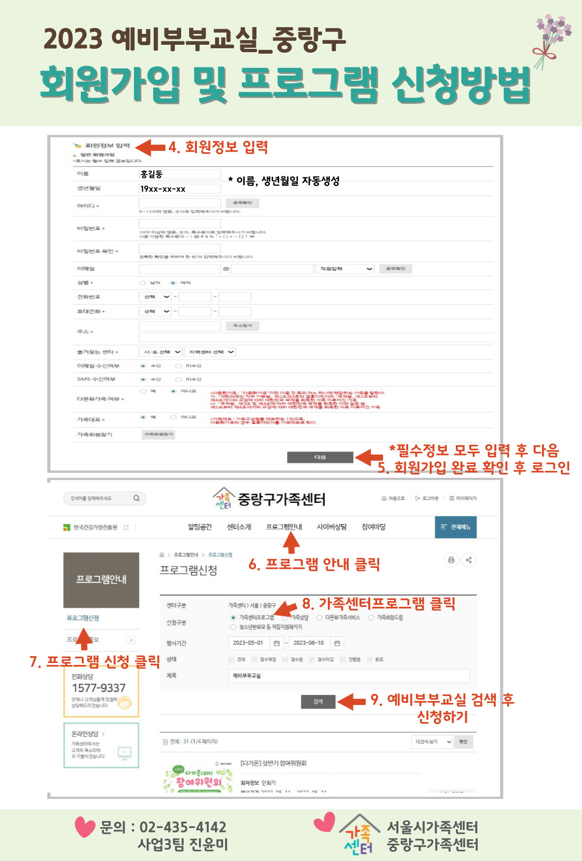 * 본 교육은 구글폼 신청 후 가족센터 회원가입 및 프로그램 신청 절차를 진행하신 후 참여가능합니다.